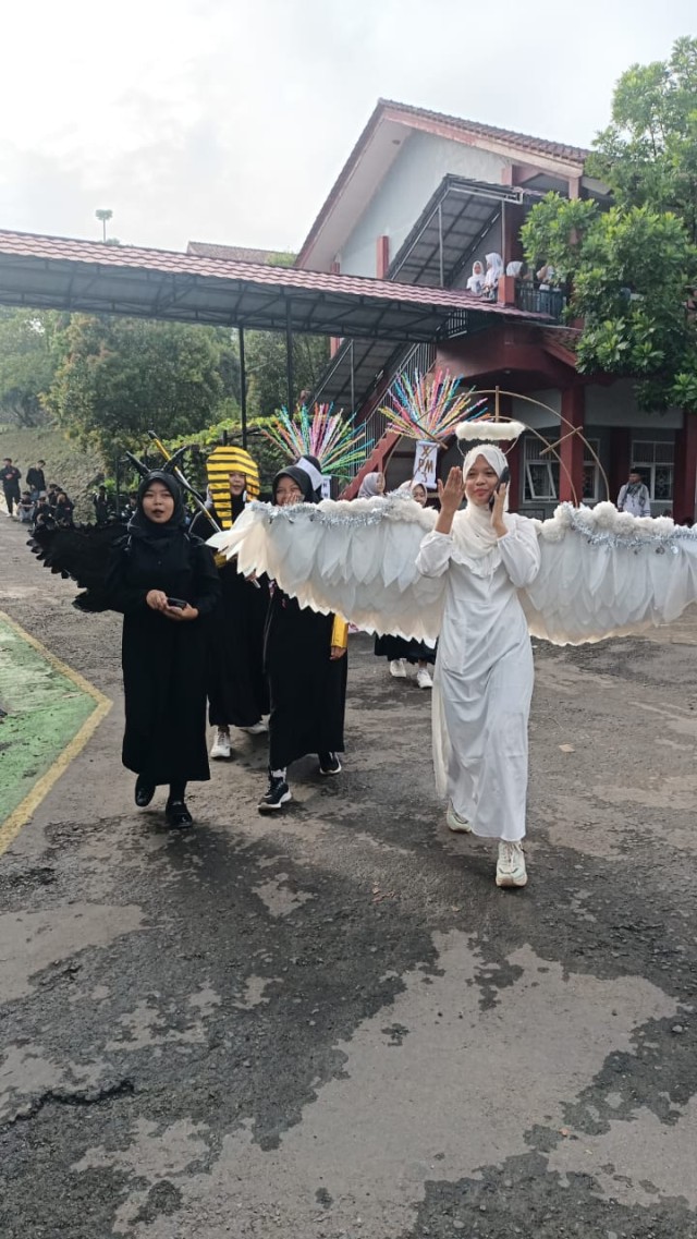 Arak-arakan: Siswa, guru, dan masyarakat berjalan bersama mengelilingi wilayah sekitar sekolah sambil membawa atribut bernuansa Islami.